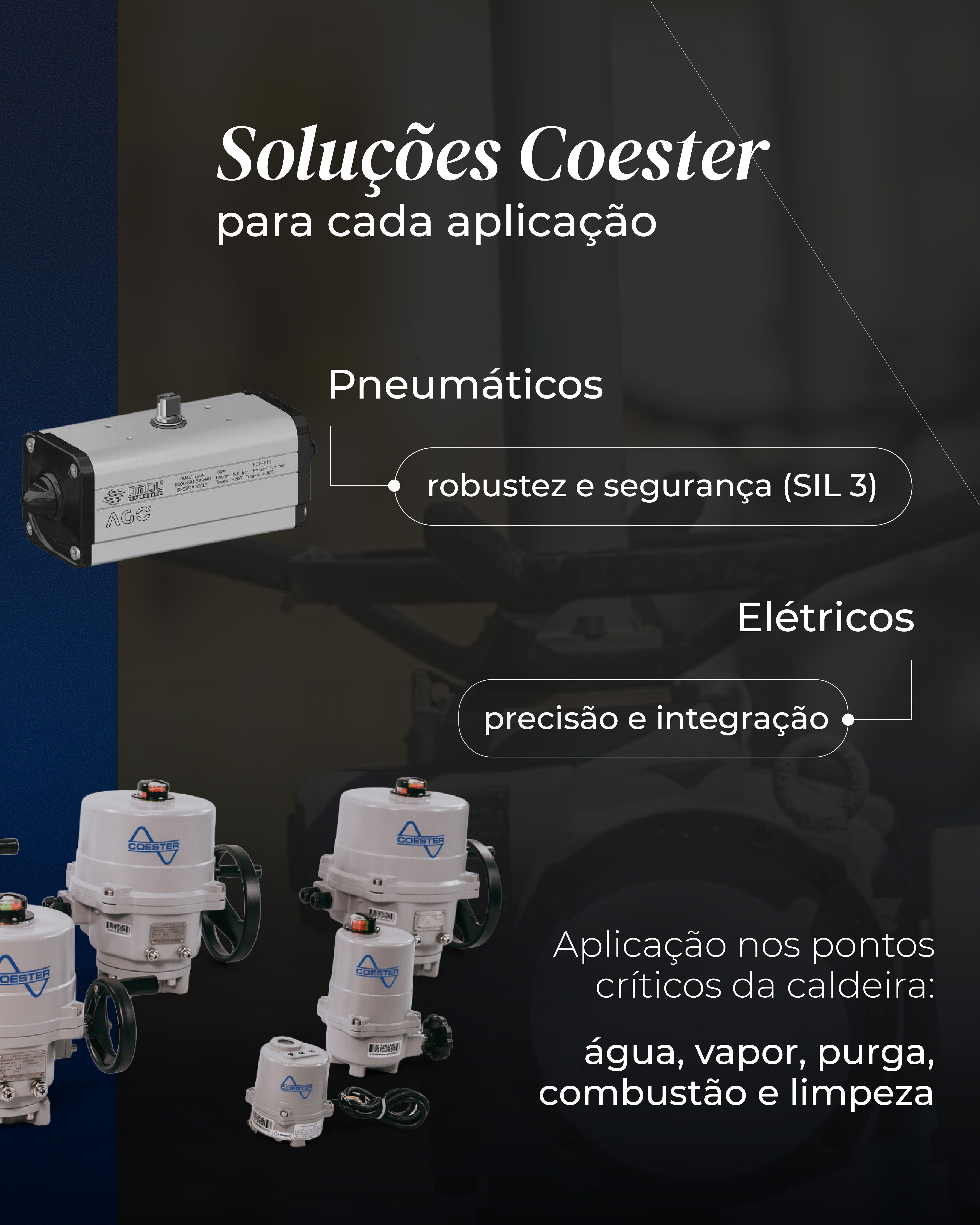 Soluções Coester para automação de caldeiras A Coester oferece duas linhas principais de atuação, que podem ser aplicadas de forma complementar conforme a criticidade do processo: